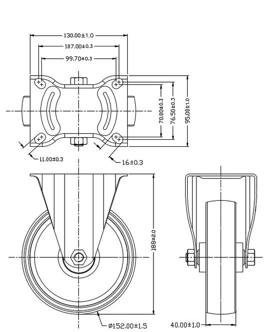 Ø 152 mm | Zestaw kołowy, koło stałe bez hamulca: poliamid, płyta mocująca, łożysko wałeczkowe, nośność 270 kg | 4062-152