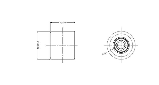 Ø 80 mm, szerokość 70 mm | Rolka do paleciaka: żeliwo poliuretan, łożysko kulkowe, nośność 320 kg | R02-70