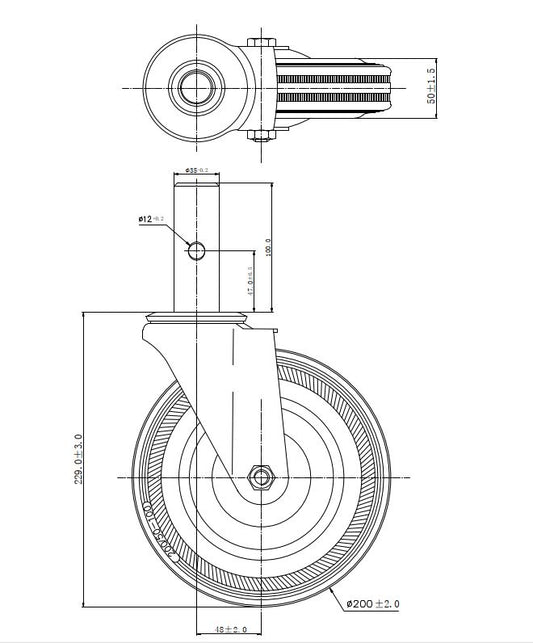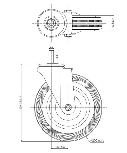 Ø 200 mm | Zestaw kołowy, koło obrotowe bez hamulca: metal guma, mocowane na trzpień, łożysko wałeczkowe, nośność 185 kg | 1157-200