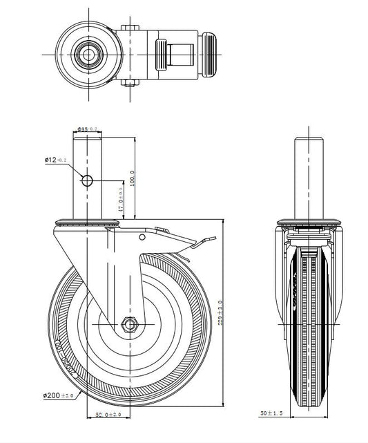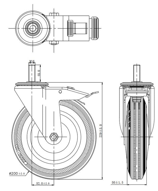 Ø 200 mm | Zestaw kołowy, koło obrotowe z hamulcem: metal guma, płyta mocująca, łożysko wałeczkowe, nośność 185 kg | 4003-200