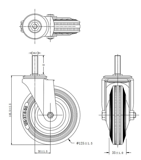 Ø 125 mm | Zestaw kołowy, koło obrotowe z hamulcem: metal guma, płyta mocująca, łożysko wałeczkowe, nośność 100 kg | 4003-125