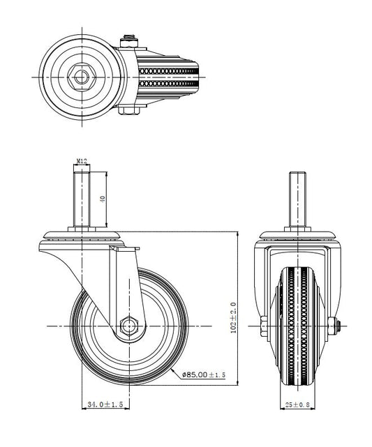 Ø 85 mm | Zestaw kołowy, koło obrotowe bez hamulca: metal guma, mocowane na śrubę, łożysko wałeczkowe, nośność 60 kg | 4008-85